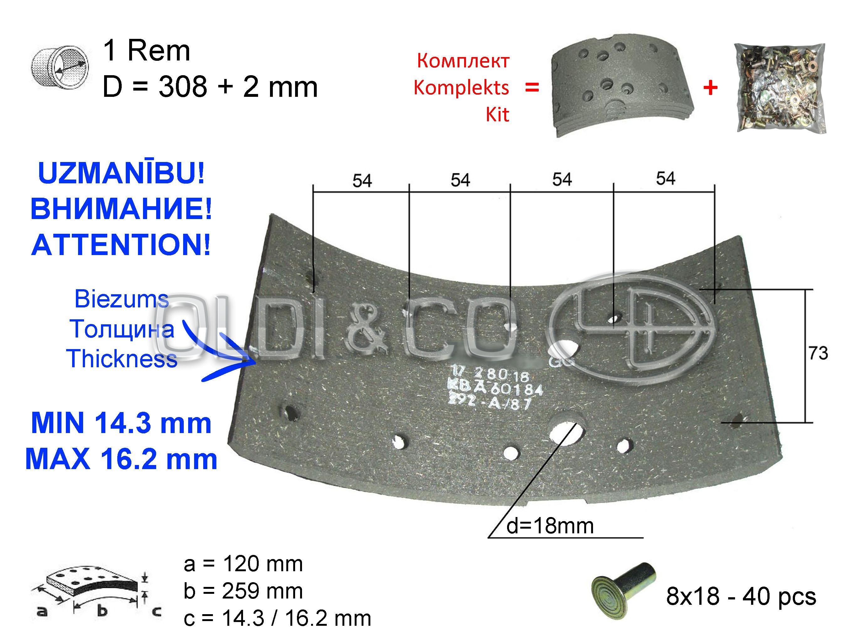 Quantity of rivets, pcs.: 40