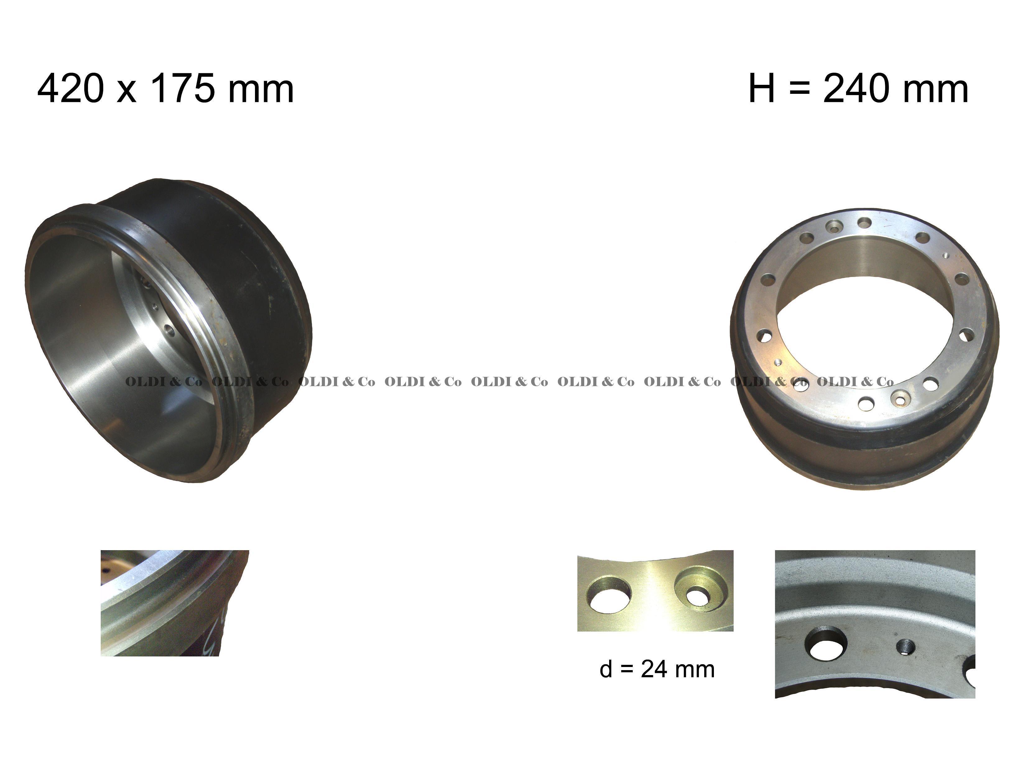 DAF - F-95 Место установки: Передний мост Высота, мм: 240 Диаметр отверстий ступицы, мм: 285 Диаметр отверстий, мм: 24 Диаметр посадочный, мм: 335 Диаметр рабочий, мм: 420 Ширина колодки, мм: 175