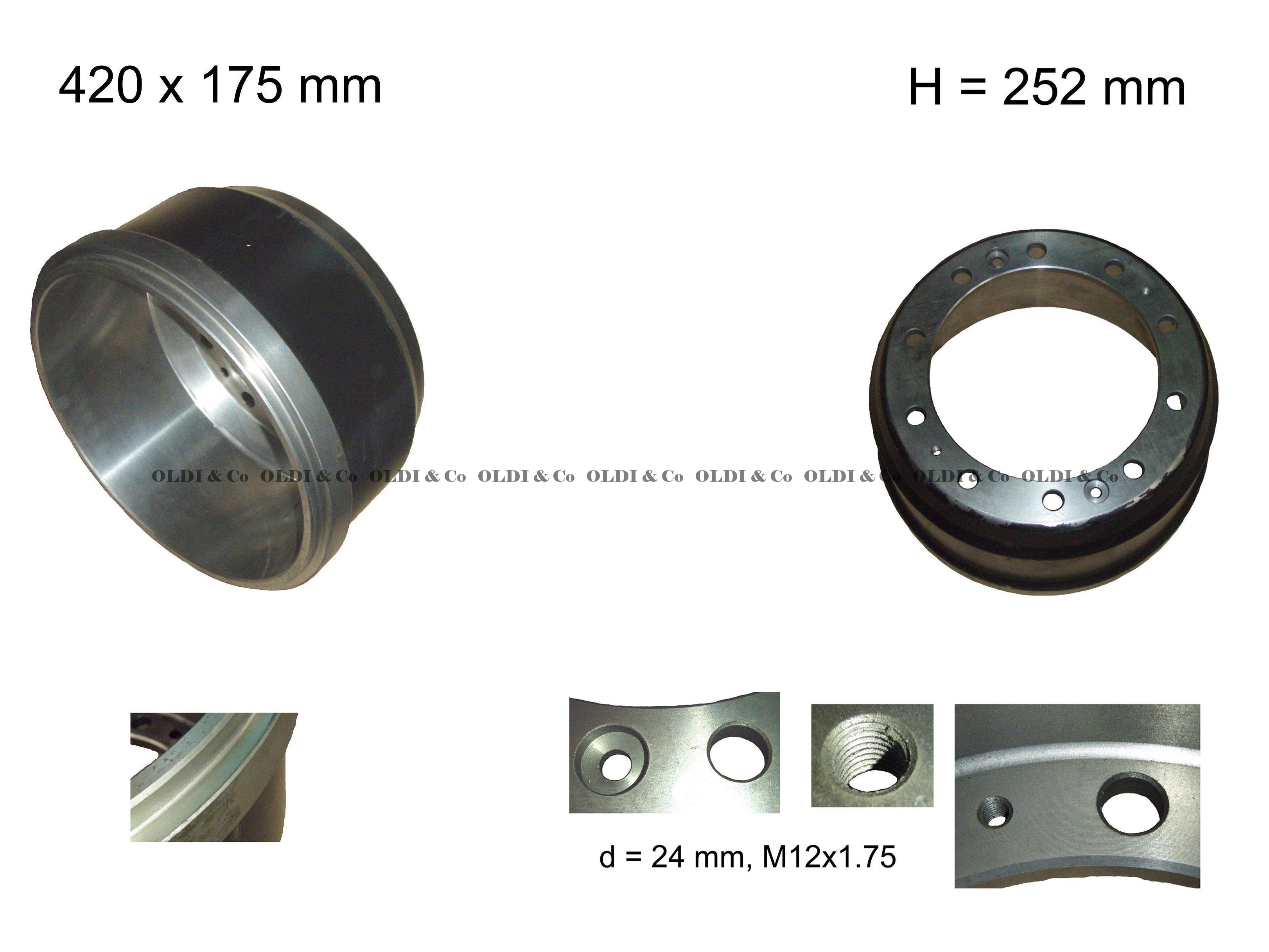 DAF - 95-XF, F-75, F-85 Место установки: Задний мост Место установки: Передний мост Высота, мм: 252 Диаметр отверстий ступицы, мм: 285 Диаметр отверстий, мм: 24 Диаметр посадочный, мм: 335 Диаметр рабочий, мм: 420 Ширина колодки, мм: 175